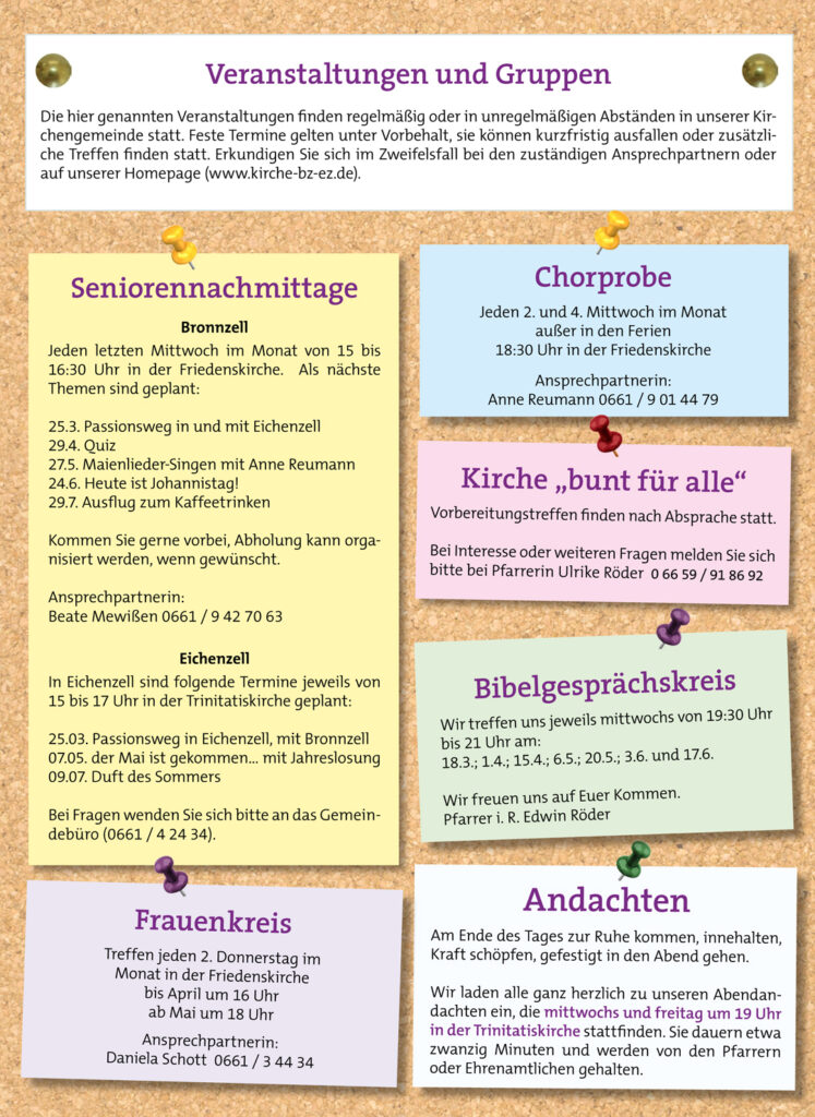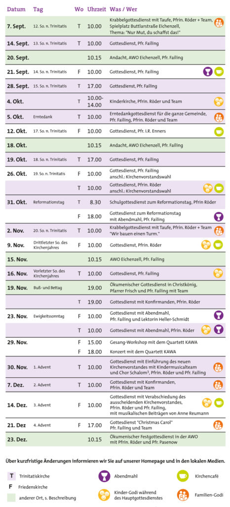 Hinweis: kurzfristige Änderungen und Aktualisierungen sowie weitere Hinweise finden Sie auch immer in der Rubrik „Aktuelles“ unter dem Punkt „Gottesdienste und kirchliche Nachrichten“.